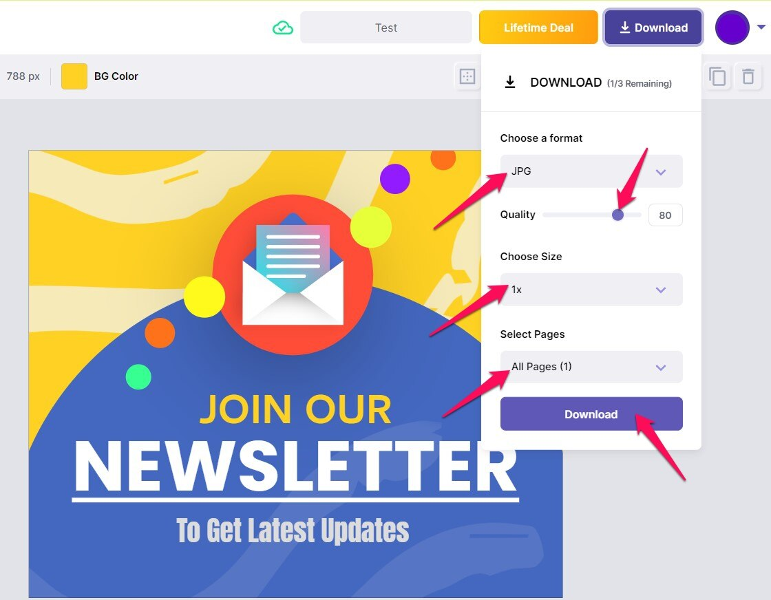 You get to choose from multiple formats, quality, and size of your design.